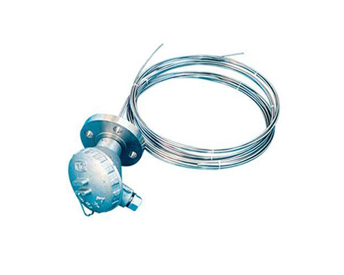 铠装铂电阻作为一种温度传感器,它比装配式铂电阻直径小,易弯曲,适宜安装在管道狭窄和要求快速反应、微型化等特殊场合。其可对-200~600℃温度范围内的气体、液体介质和固体表面进行自动检测,并且可直接用铜导线和二次仪表相连接使用,由于它具有良好的电输出特性,可为显示仪、记录仪、调节器、