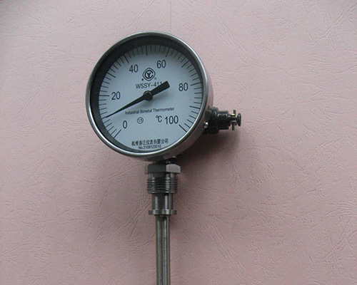 远传双金属温度计是将热电阻或热电偶的信号远传功能与双金属温度计就地指示功能相结合,它既能满足现场测温需求,亦能满足远距离传输需求,远传双金属温度计可以直接测量各种生产过程中的 -40~+600℃范围内液体、蒸气和气体介质以及固体表面的温度测量。
